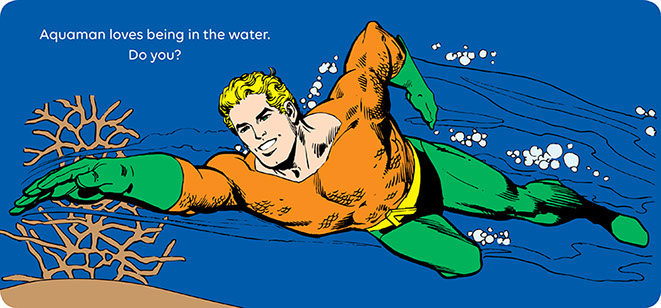 Tub time has never been more fun now that the littlest super hero fans can take a bath with Aquaman! Kids are encouraged to swim, splash, and kick along with their favorite aquatic hero. It’s also great for trips to the pool and the beach! This sturdy, waterproof book inspires imaginative play and a love of being in the water!