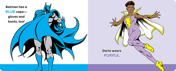 Superman™ is famous for his red cape (and a few impressive superpowers)! And everyone knows which color the Green Lanterns™ wear. Young superhero fans can learn all of their favorite Super Heroes’ colors, shapes, and sizes in this fun concept board book.