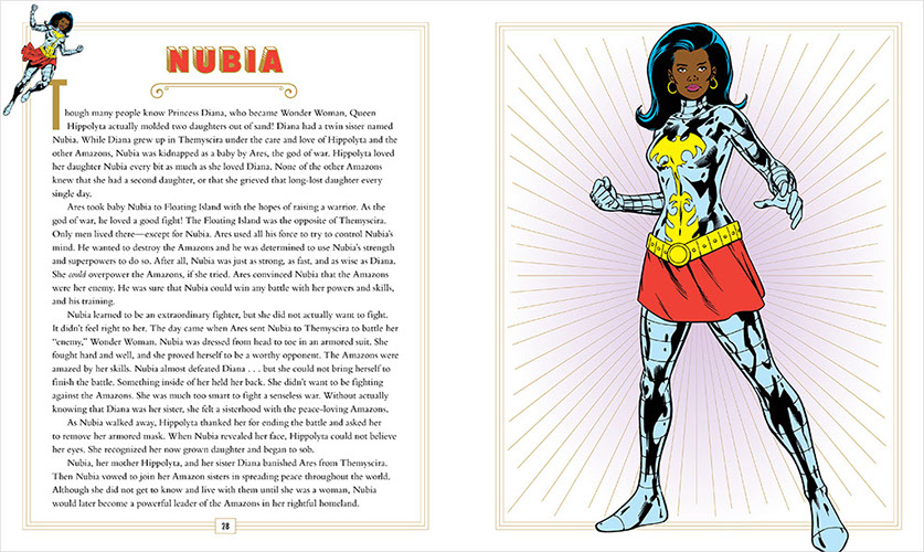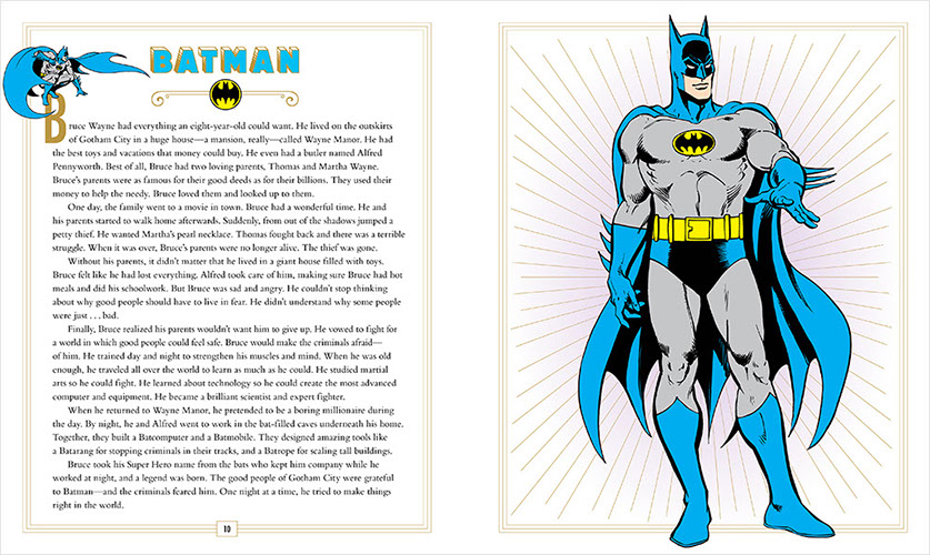Each origin story is a thrilling, self-contained bedtime story. Baby Kal-El makes a dramatic escape from the planet Krypton, arriving on Earth in a rocket ship. Wonder Woman and Nubia are shaped out of clay by their mother Hippolyta, and given their powers by the gods. Each Green Lantern—Hal Jordan, John Stewart, and Jessica Cruz—came by their power rings in interesting ways. Young super heroes will love learning about how their favorite characters came to be.