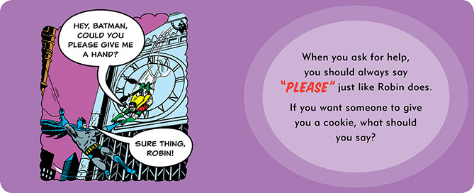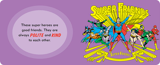 Even when the fate of the world is at stake, Superman, Batman, and Wonder Woman don’t forget their manners—and neither should you! When Batman and Robin are hot on the trail of the Joker, they still say “Please.” When Wonder Woman swoops in to help in the nick of time, Superman always says “Thank you.” And she takes the time to say, “You’re welcome.” An action-packed board book illustrated with beloved classic DC art, Super Heroes Say Please is the only etiquette book your child will ask for again and again.