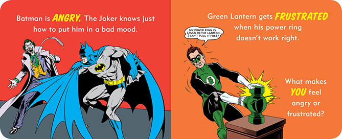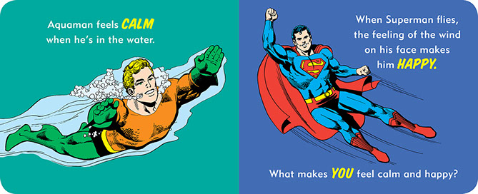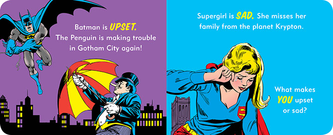 Super heroes seem pretty stoic—ahem, Batman—but they actually feel a range of emotions just like everybody else. Swimming in the water makes Aquaman happy. Being a great acrobat makes Batgirl proud. Little ones are invited to talk about what makes them feel angry, excited, scared, and more along with their favorite heroes. Super Heroes Have Feelings Too! provides a fun, easy way to explore emotions with babies, toddlers, and preschoolers.
