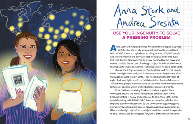 Each mini-biography tells a story of a woman who identified a problem and fixed it through some combination of ingenuity, experimentation, perseverance, hard work, and luck. These inspiring stories also provide advice and strategies for any reader who wants to follow in the footsteps of creative, resourceful, game-changing women like Marie Curie, Stephanie Kwolek, Keiana Cavé, Grace Hopper, Sha Yao, Katherine Johnson, and more.