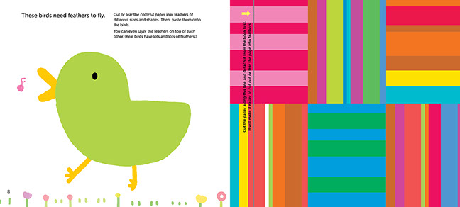 This beautiful, thoughtfully designed book provides the clever, inventive prompts and the materials for making striking collages. Children can cut (or tear) and paste colorful scales onto a school of fish, petals onto a bouquet of flowers, feathers onto birds, and much, much more.