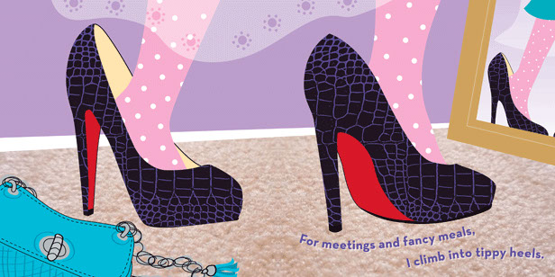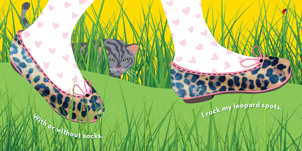 “Sandals gold and strappy, always make me happy…” So do leopard-print suede slip-ons, sparkly ballet flats and a total of 7 fabulous, tactile shoes with sassy rhyming text for shoe lovers of all ages.