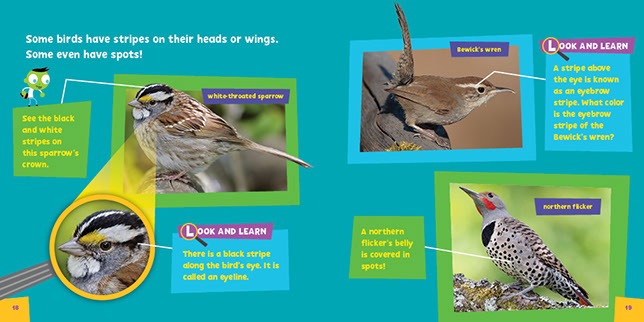 • a 64-page book packed with bright, informative photos and simple tips for spotting and identifying common birds