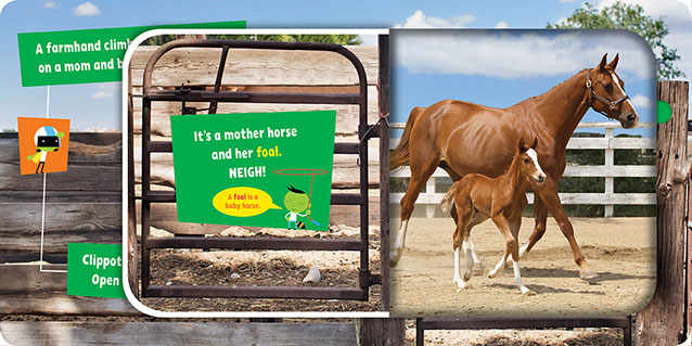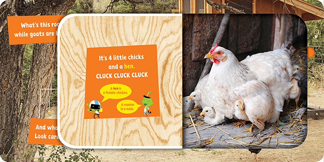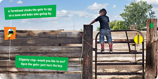 In Turn the Key: On the Farm, kids can open doors and peek inside a chicken coop, pigsty, horse pen, and more.