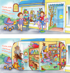 Turn the key—open the door. Find treats and puppies, toys and more! Take the yellow key out of its pocket and unlock doors to six favorite neighborhood spots. Little ones will love finding all of the adorable details as much as they'll enjoy working the key.